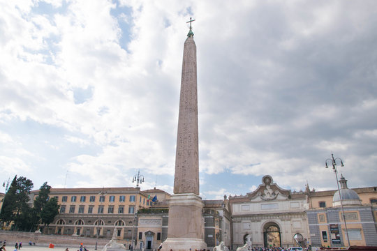 Umgeben ist der flaminische Obelisk von den fast identischen Barockkirchen Santa Maria dei Miracoli und Santa Maria in Montesanto. Die Kirchen stehen mit dem Obelisken in einer gestalterischen Beziehung, gehören aber weder ganz zum Straßenbild noch zum Platz.